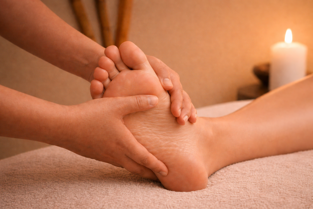 Die Fußreflexzonenmassage ist eine wohltuende Anwendung, bei der bestimmte Bereiche der Füße gezielt behandelt werden. Sanfte Drucktechniken können zur Entspannung beitragen und das allgemeine Wohlbefinden fördern. Die Behandlung erfolgt in ruhiger Atmosphäre und wird individuell auf Ihre Bedürfnisse abgestimmt.